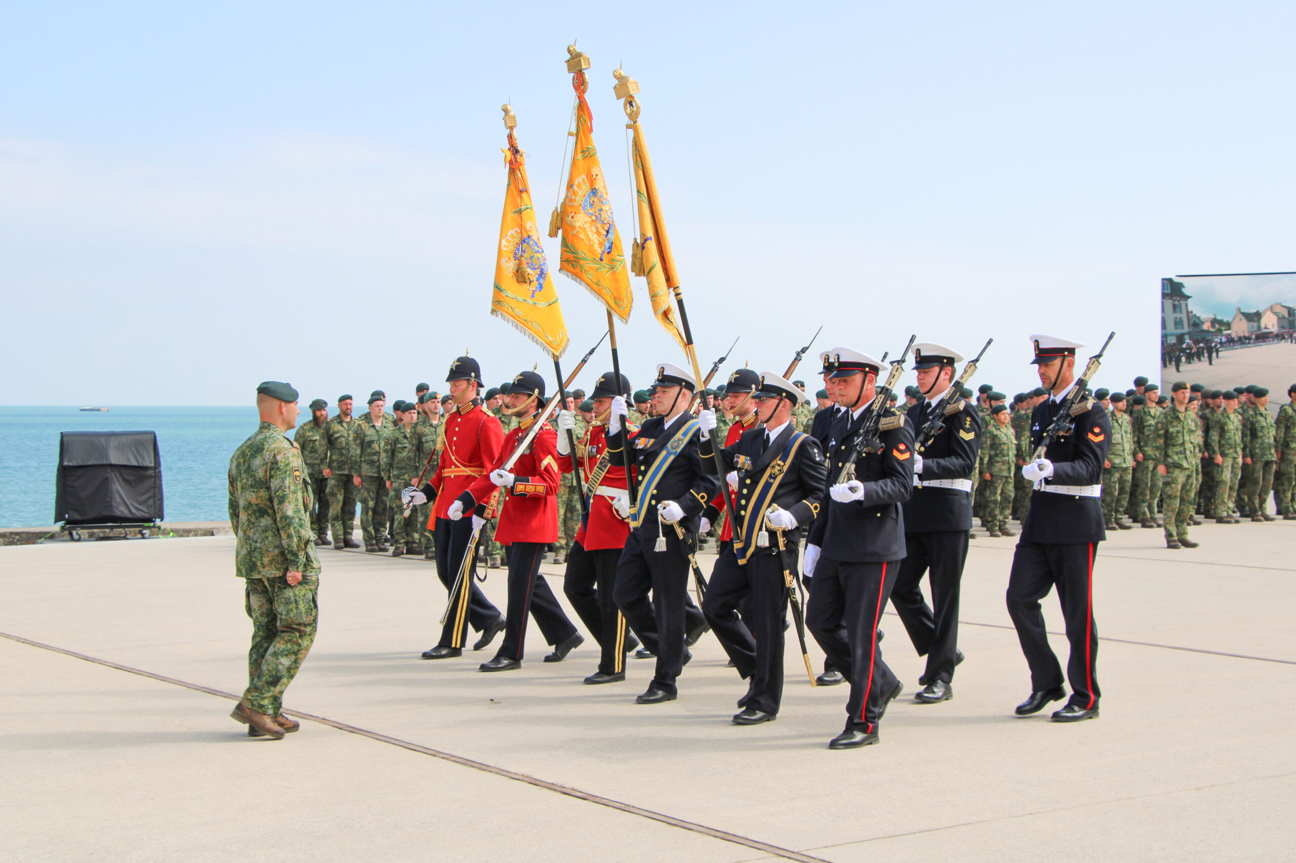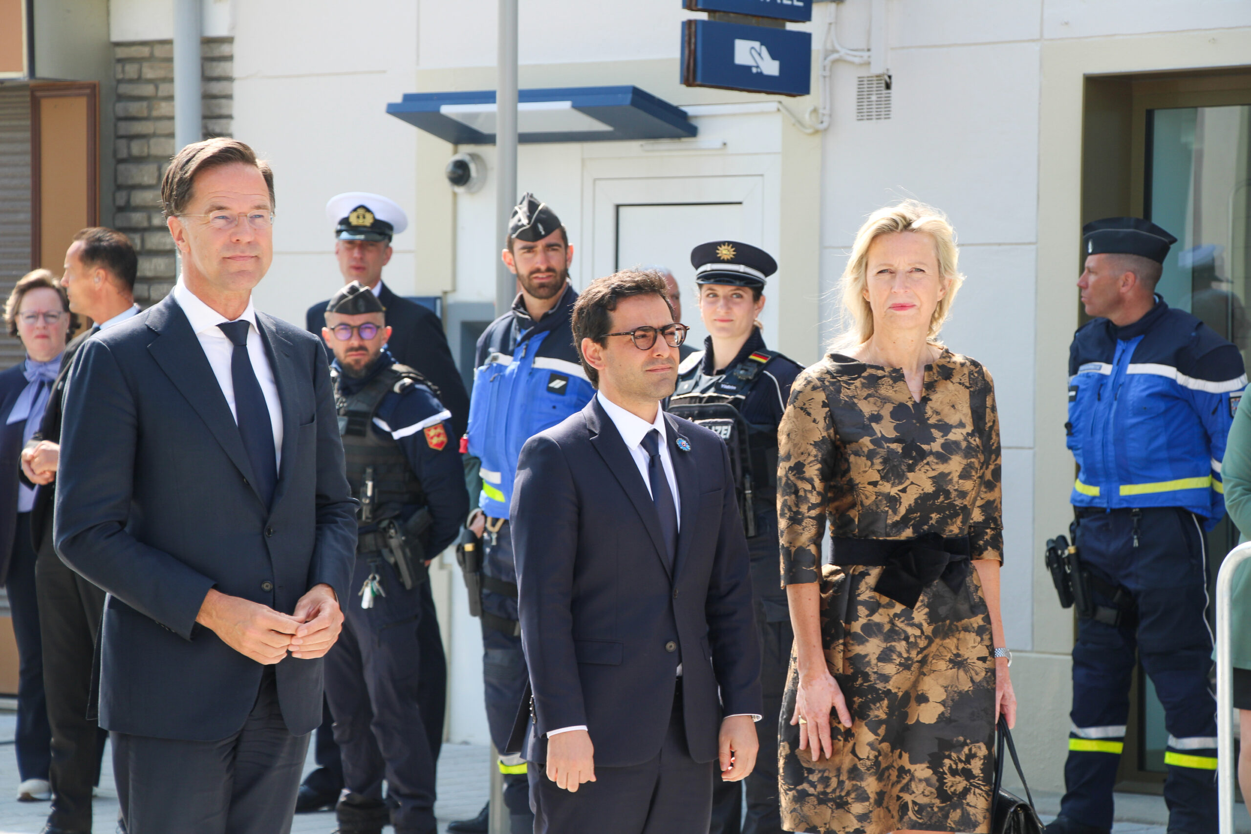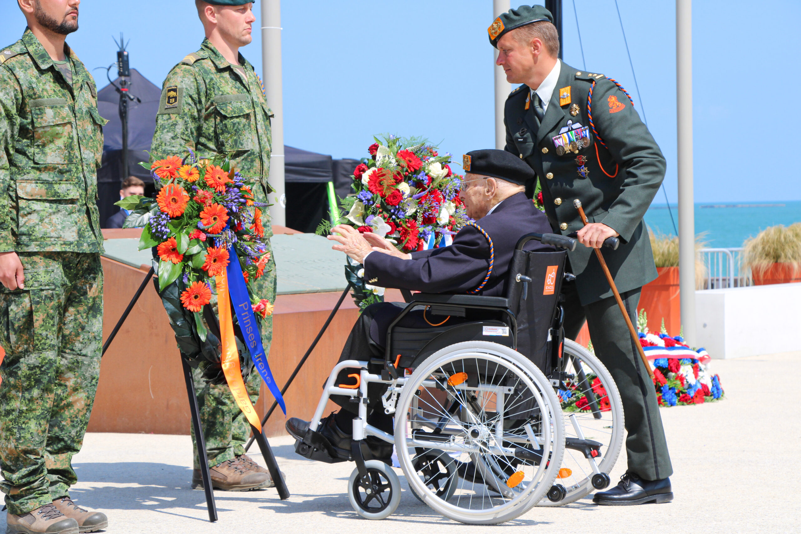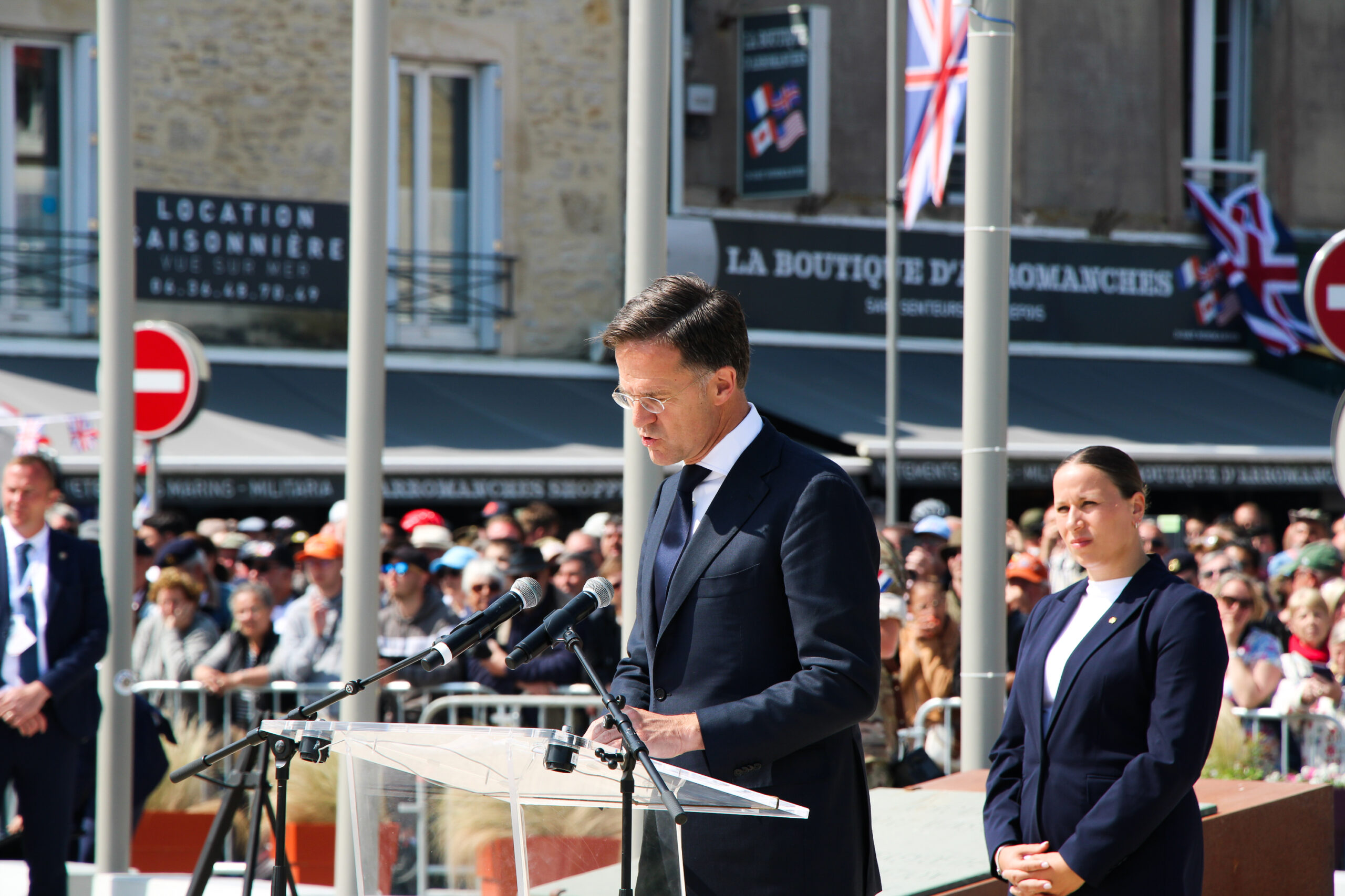 La journée du 6 juin a débuté par l’habituelle cérémonie néerlandaise sur l’esplanade mémorielle devant le musée, afin de rendre hommage aux soldats de la brigade royale « Princesse Irène » débarqués à Arromanches en août 1944. Étaient présents le Premier ministre Néerlandais, Mark Rutte, la ministre de la Défense Néerlandaise, Kajsa Ollongren, le général Frank van Sprang, inspecteur général des Forces armées néerlandaise, et Stéphane Séjourné, alors ministre de l’Europe et des Affaires étrangères en France.