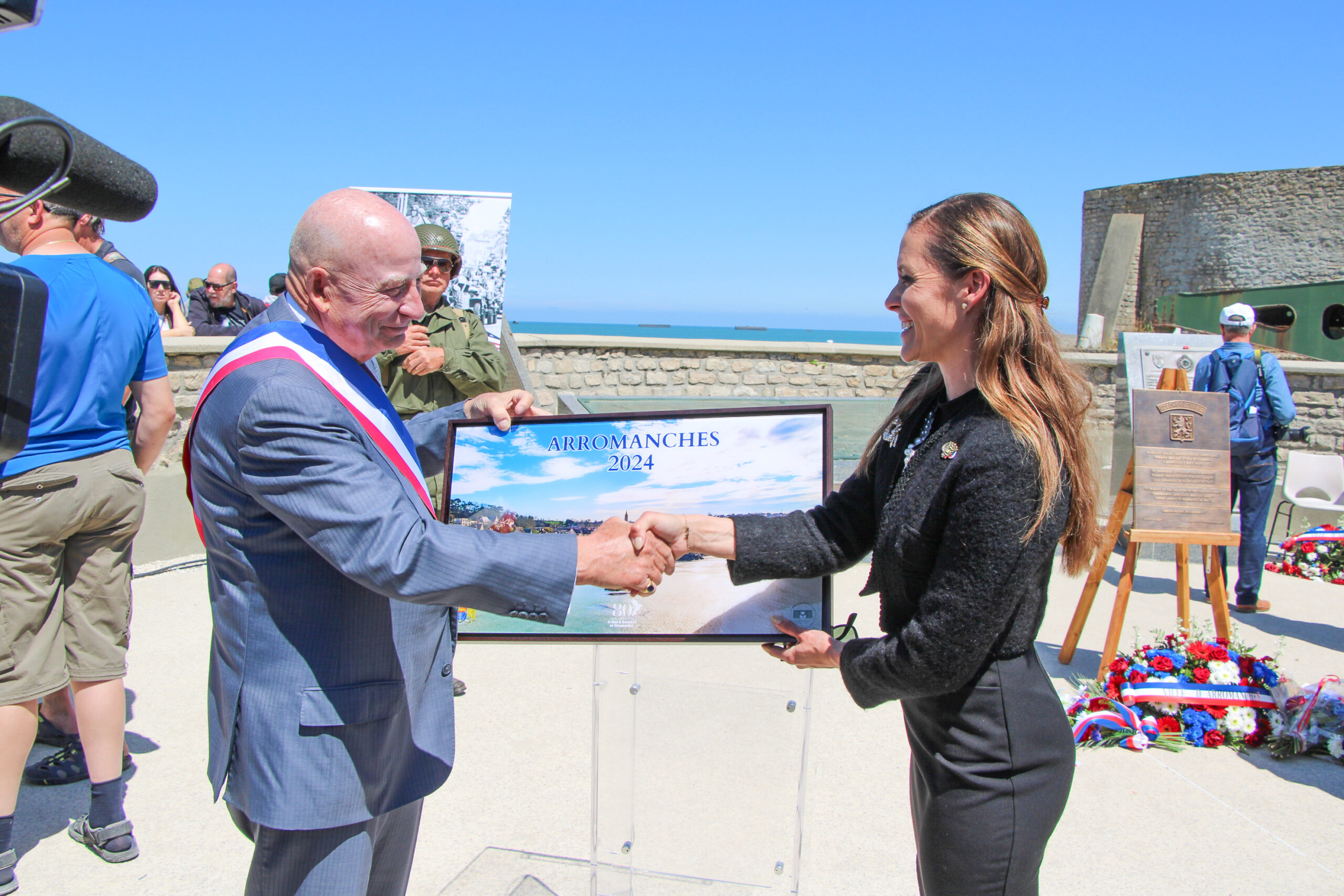Le vendredi 7 juin, c’est une cérémonie en hommage aux près de 4000 soldats tchèques ayant débarqué par le port préfabriqué d’Arromanches du cours de l’été 1944 qui s’est tenue. Une plaque commémorative en leur hommage a été installée au niveau de l’espace mémoriel derrière le musée.
